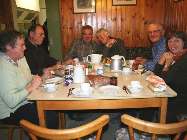 Am nächsten Tag ging es nach dem Frühstück auf den ersten Teil der Samstagswanderung. Diese führte über einen Rundweg zurück zum Naturfreundehaus, das auch zur Mittagseinkehr gute Dienste leistete. Natürlich war es nicht möglich, dass sich alle zur zweiten Runde nach dem Mittag aufraffen konnten. Es gehen Gerüchte herum, dass sich Manche sogar in die Betten verkrochen hätten.